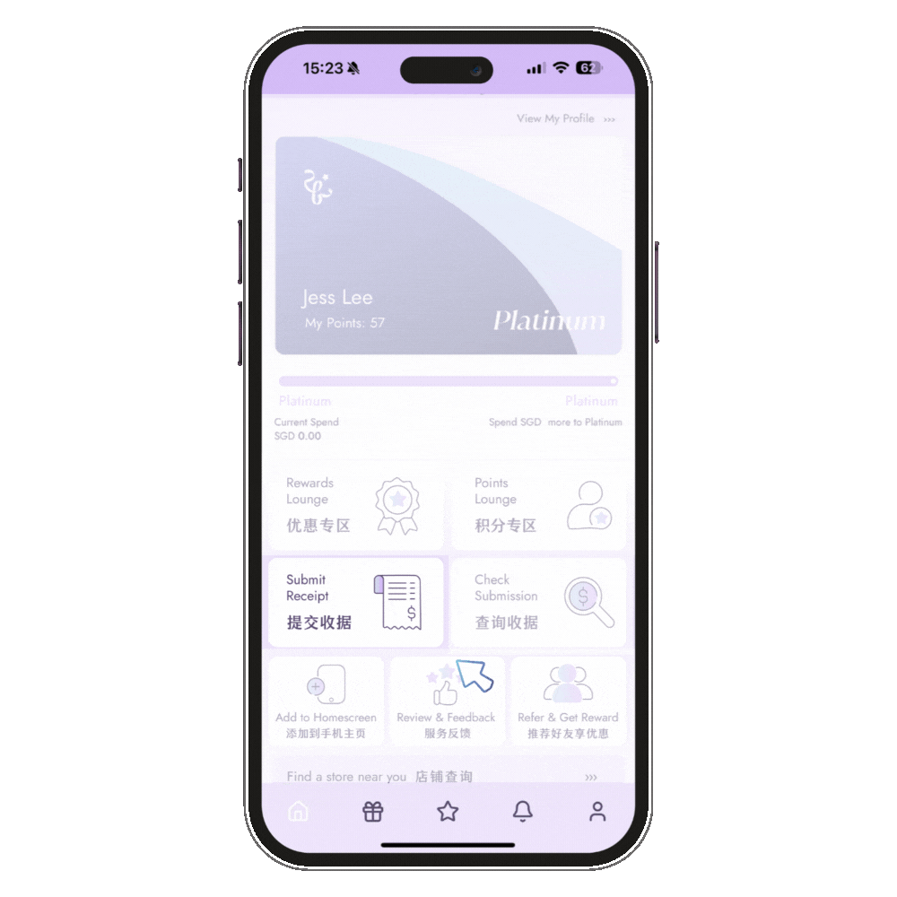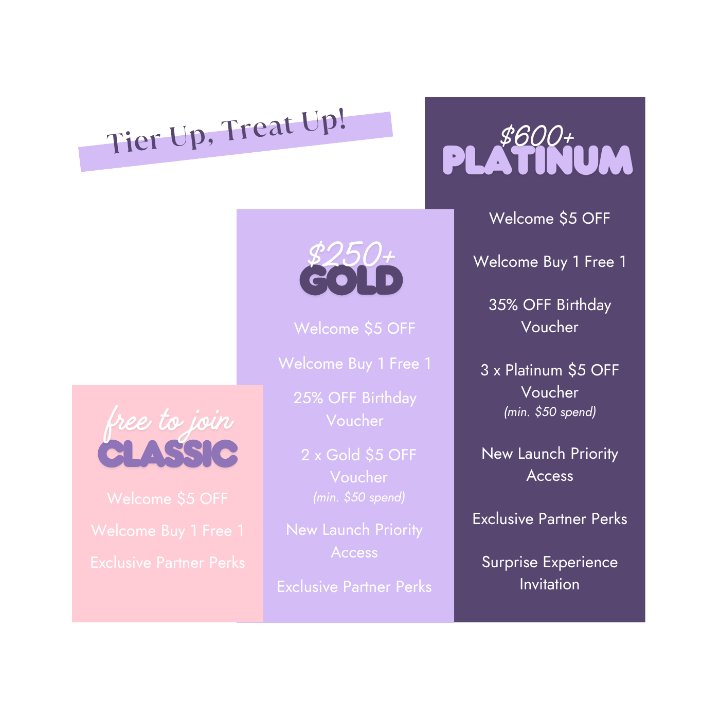 - Platinum: Spend an accumulated amount of S$600+ in your tier cycle